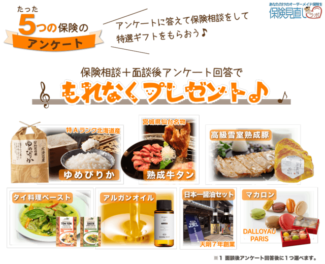 5つのアンケートを答えて保険相談♪面談後に豪華商品がもらえる☆
