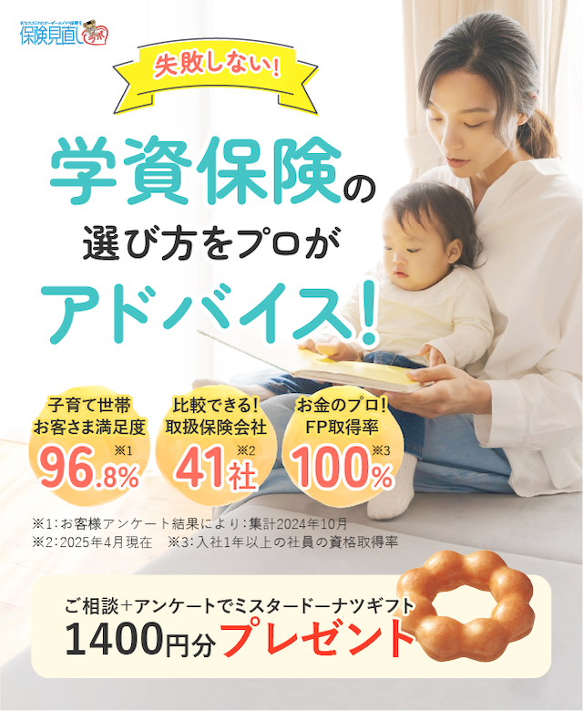 出典:feature.cozre.jp5問のアンケートと保険の無料相談で全員にプレゼント!ミスドの1,400円分のギフトチケットはご自身へのごほうびにも♪