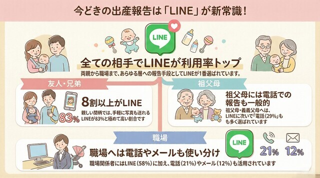 スマートフォンが広く普及する前は、電話やハガキでの出産報告が一般的でしたが、今はメールやSNSでの報告が増えていますよね。