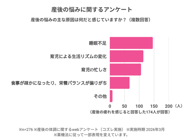 産後は睡眠不足や生活リズムの変化により、栄養バランスが崩れやすい時期。