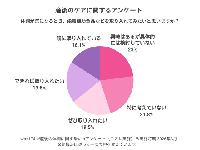 実際、ママたちへのアンケートでも、こうした体調が気になるときに「栄養補助食品などを取り入れてみたいか」を聞いたところ、「取り入れている」、または「ぜひ取り入れたい」「できれば取り入れたい」と回答した人が約55%にのぼりました。