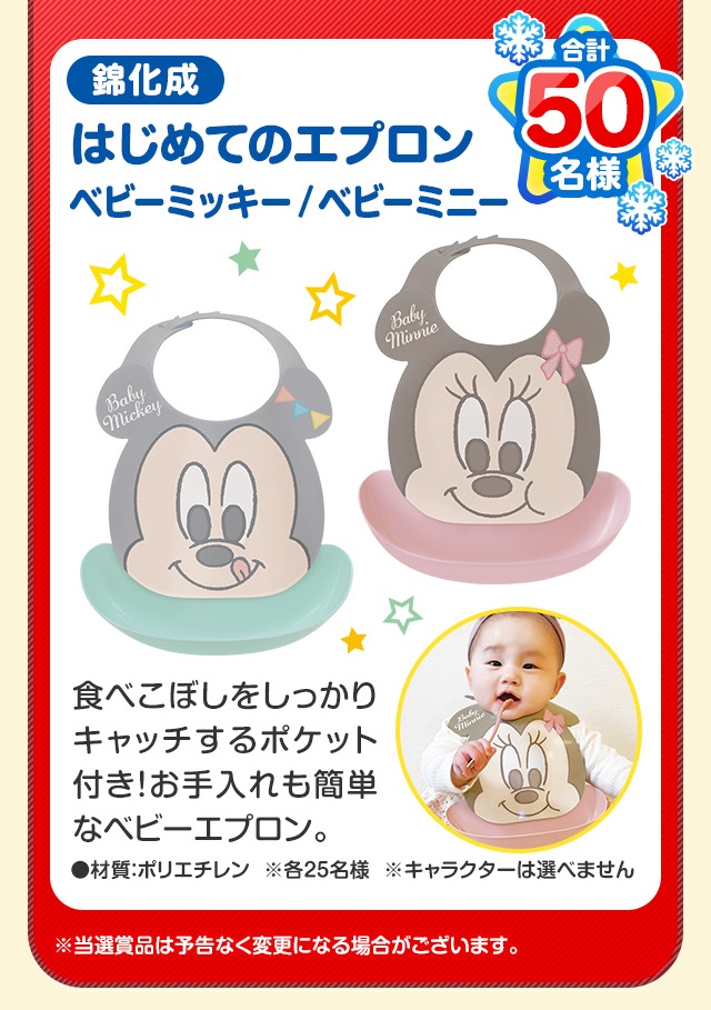 ・錦化成 はじめてのエプロン ベビーミッキー/ベビーミニー 50名様